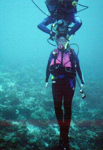 BILL STANDING ON PAM'S HEAD AT 60 FEET DOWN!!